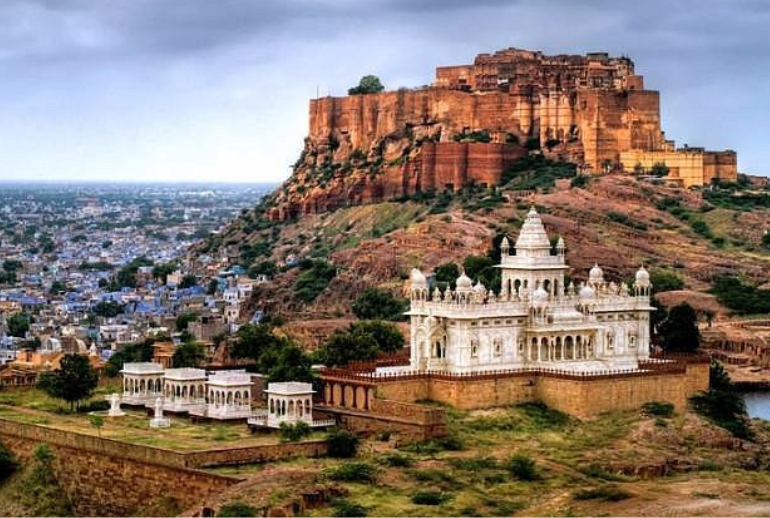 Rising perpendicular and impregnable from a hill which is 125 metres above Jodhpur’s skyline is the Mehrangarh Fort. This historic fort is one of the most famous in India and is packed with history and legends. Mehrangarh Fort still bears the imprints of cannonball attacks courtesy the armies of Jaipur on its second gate. Chiselled and sturdy, the fort is known for its exquisite latticed windows, carved panels, intricately decorated windows and walls of Moti Mahal, Phool Mahal and Sheesh Mahal.