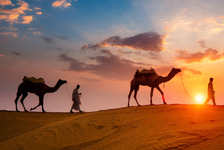 The best time to reach Sam sand dunes is around evening (sunset) at around 4-7 PM or early morning, during sunrise time of 4 to 6 am. You can book a camel or jeep (which is available at desert camps) to reach.the sunset point, that is 20-30 minutes from the campsite.